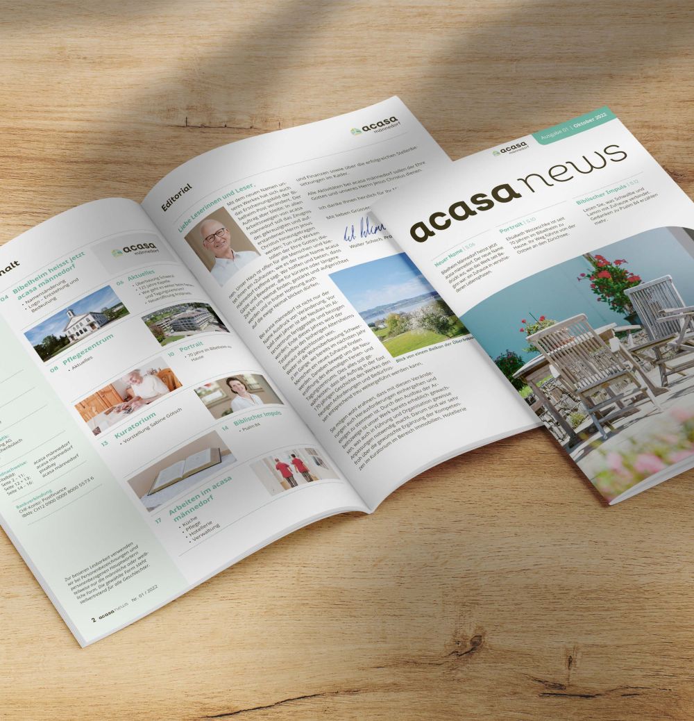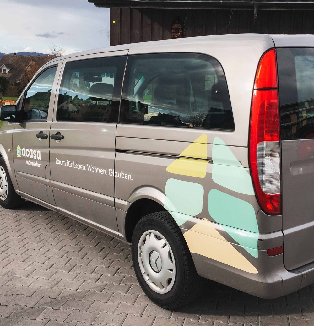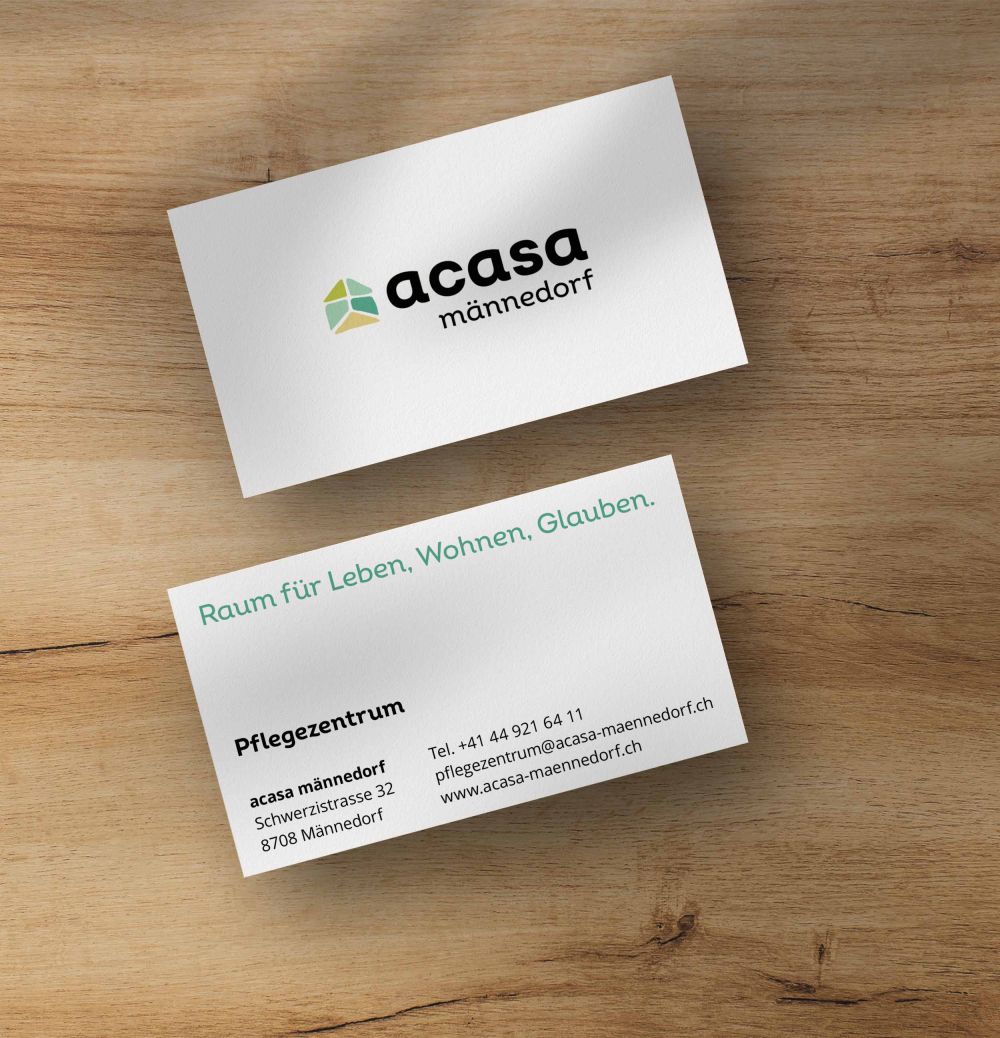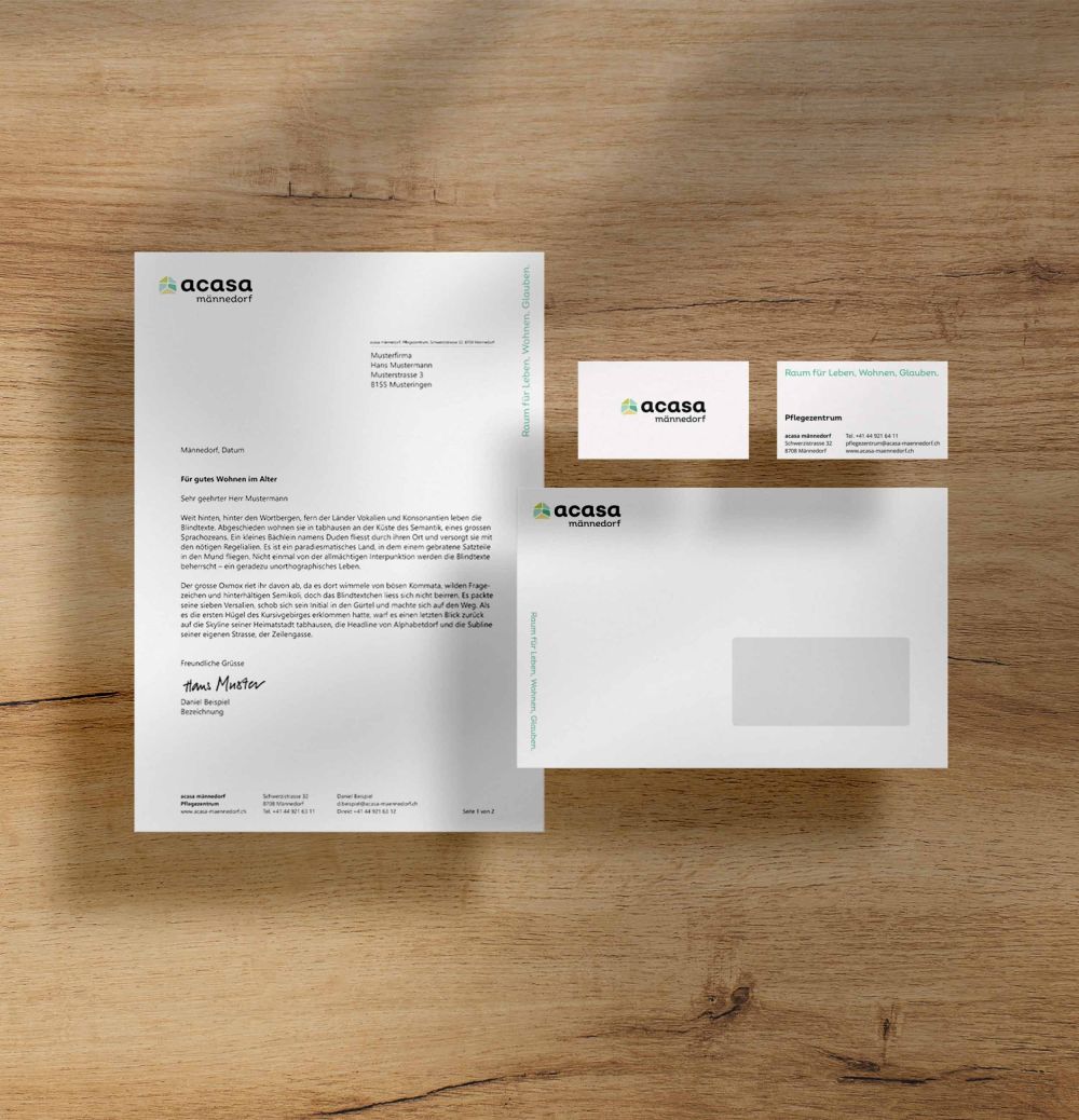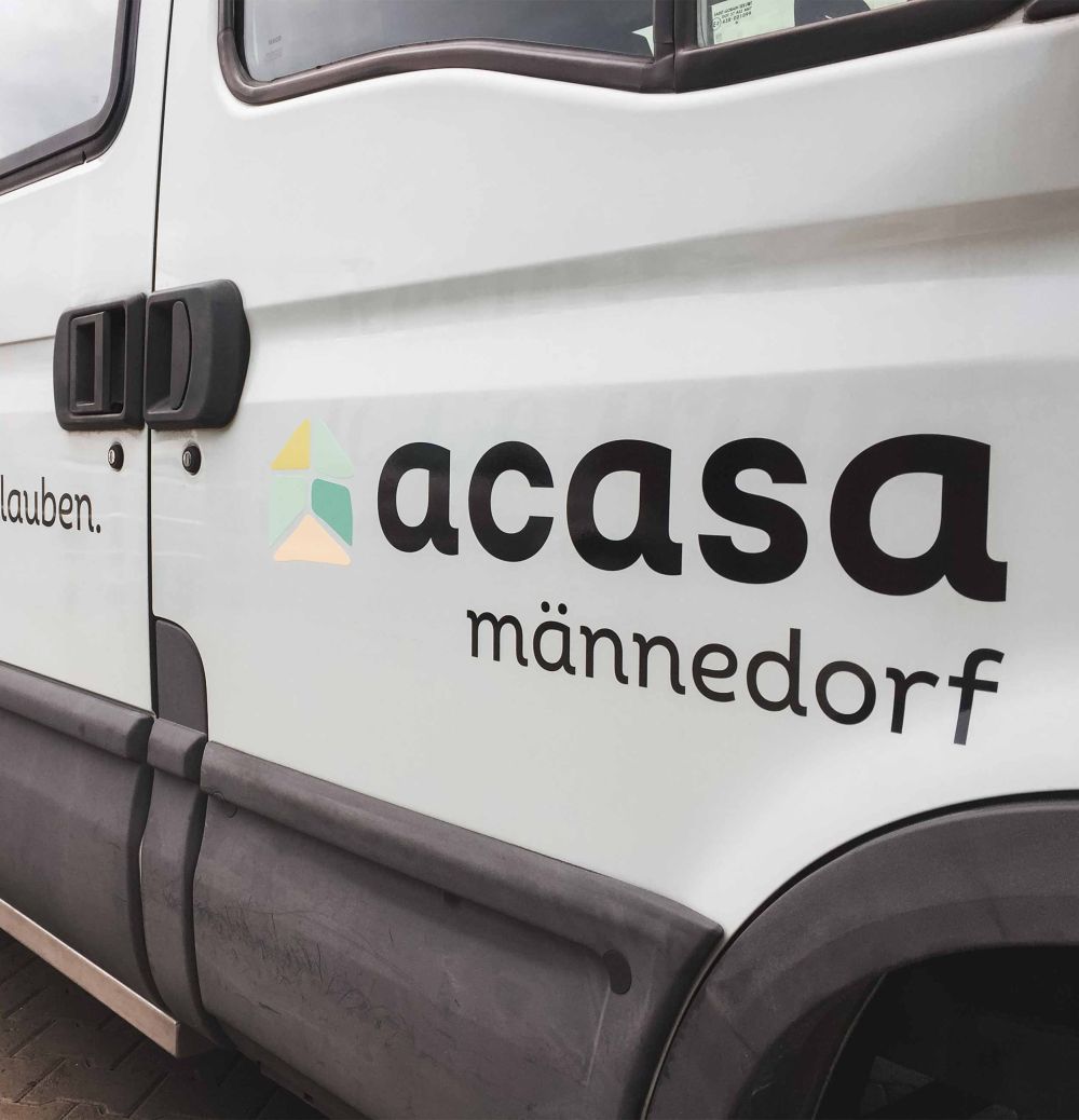 Unter strengster Geheimhaltung entwickelten wir mit acasa männedorf einen komplett neuen Markenauftritt – von Logo und Claim über Briefschaften, Signaletik bis zu Fahrzeugbeschriftungen.