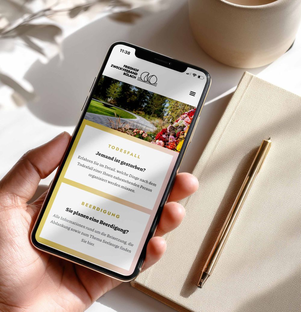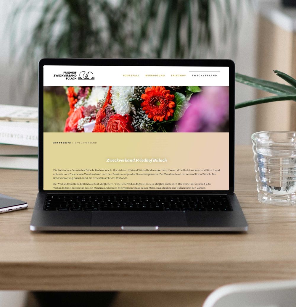 Die klare Struktur der neuen Website des Friedhofs Bülach verbessert den Informationszugang für die Bevölkerung enorm. PS Werbung hat eine besonders benutzerfreundliche Navigation entwickelt. Das macht es in Kombination mit dem Schnelleinstieg Besucherinnen und Besuchern einfach, zu wichtigen Informationen rund um einen Todesfall oder eine Beerdigung zu gelangen. Die würdevolle Gestaltung mit gedeckten Farben und die grosszügigen Bilder bringen den Friedhof auch online als Ort der Ruhe und Besinnung nahe.