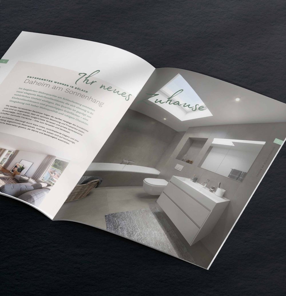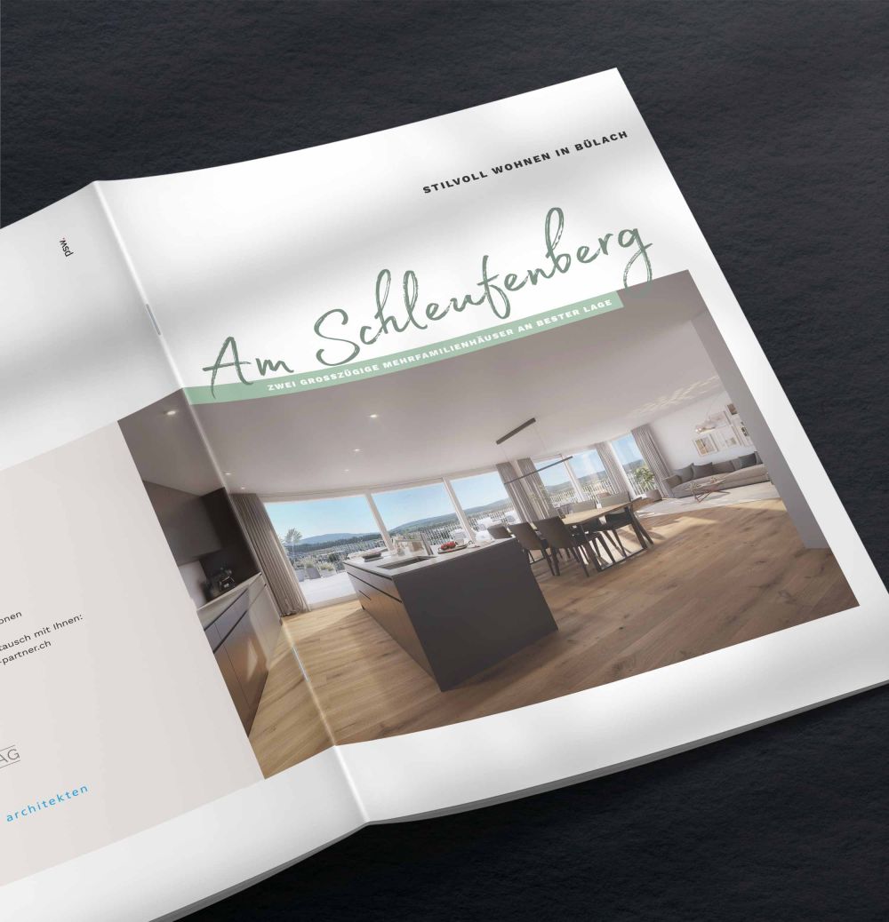 Broschüre für zwei Mehrfamilienhäuser am Schleufenberg in Bülach