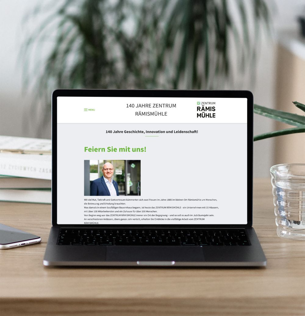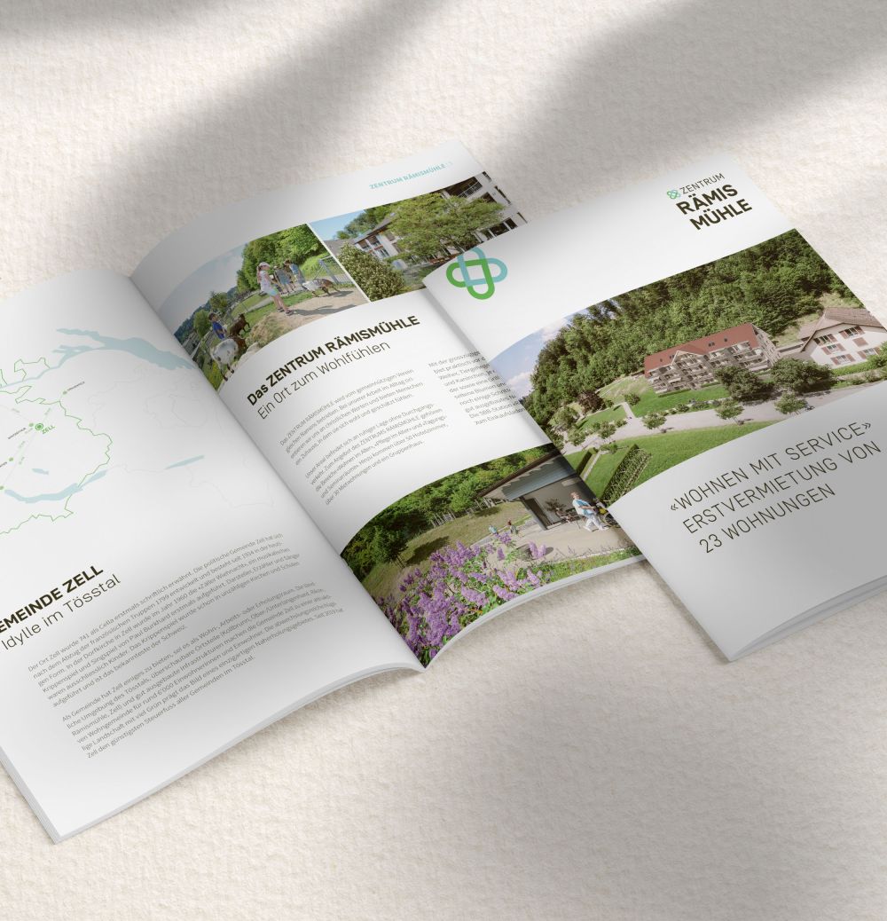 Das Zentrum Rämismühle ist praktisch ein kleines Dorf: Wohnen und Pflege im Alter, Tagungs- und Seminarräume, über 50 Hotelzimmer, mehr als 30 Mietwohnungen sowie ein Gruppen- und Lagerhaus gehören dazu. PS Werbung schuf für das Zentrum einen umfassenden Neuauftritt – von der Logo-Erneuerung über Broschüren und Drucksachen bis zur Website. Wir entwickelten ein stimmiges Design für alle On- und Offline-Medien, realisierten die Website und machten mit Beachflags, Gebäude- und Fahrzeugbeschriftungen das Erscheinungsbild konsequent sichtbar. Auf dem weitläufigen Areal ebenso wie in Fahrt und im Web.