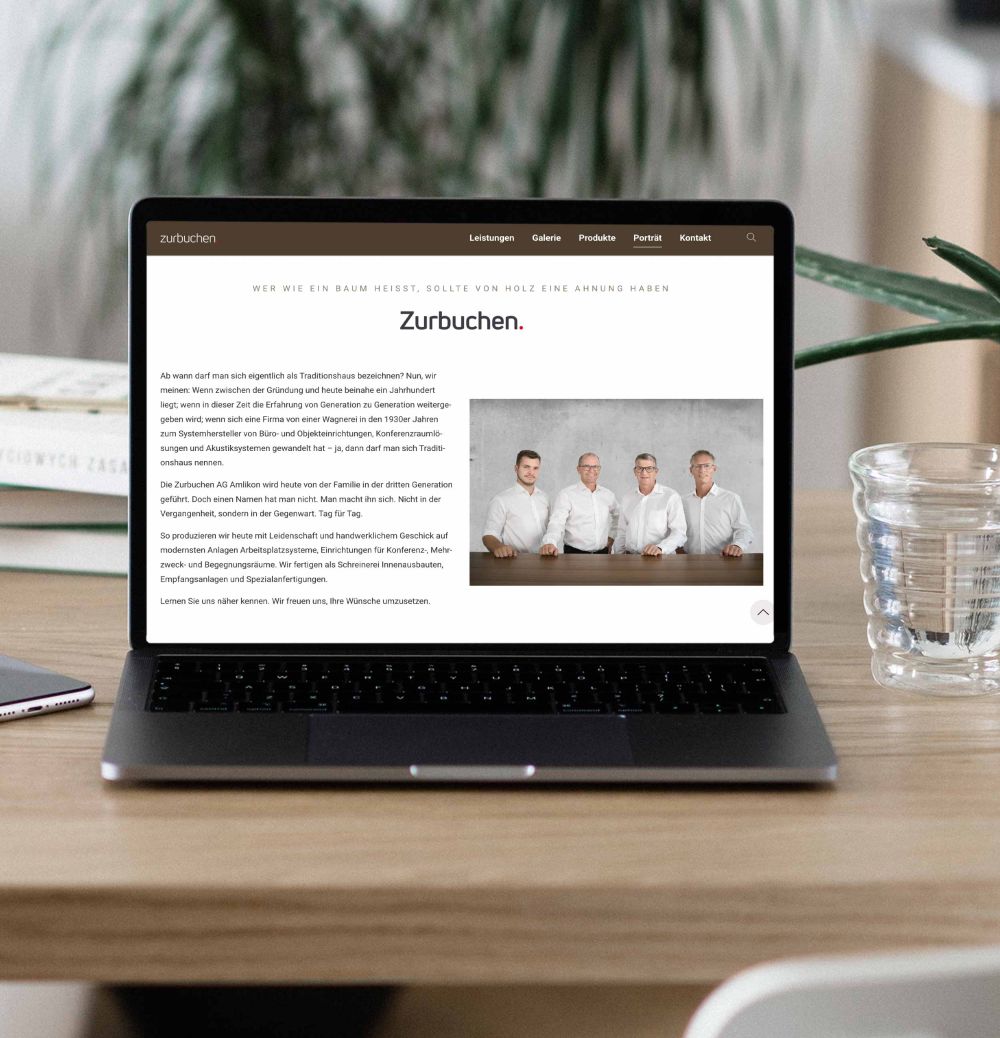 Seit vielen Jahren begleiten wir die Firma Zurbuchen AG in ihrer Kommunikation, vom Logo über Drucksachen bis zum digitalen Auftritt. 2024 haben wir ihre Website neu gestaltet und die kommende Ära des Büromöbel-Spezialisten eingeläutet – mit einer umfangreichen Website inklusive Produktübersicht, filterbarem Portfolio und klarer Nutzerführung. Der neue Auftritt widerspiegelt die Werte von Zurbuchen: Mit Leidenschaft, Präzision und modernster Technik fertigt das Unternehmen hochwertige Arbeitsplatzsysteme, Einrichtungen für Konferenz- und Begegnungsräume und individuelle Schreinerarbeiten.